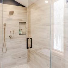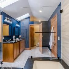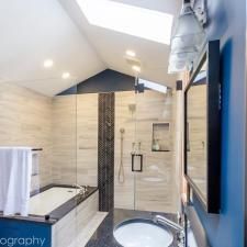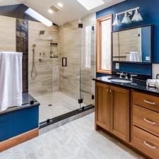 "In the quiet privacy of this master bath, three modest chambers blossomed into an expansive yet secluded Master Bath Suite. Our discerning clients guided by an innate sense of style, curated a captivating symphony of colors and textures—a bold testament to their vision. Within these walls, we orchestrated a harmonious blend of form and function.